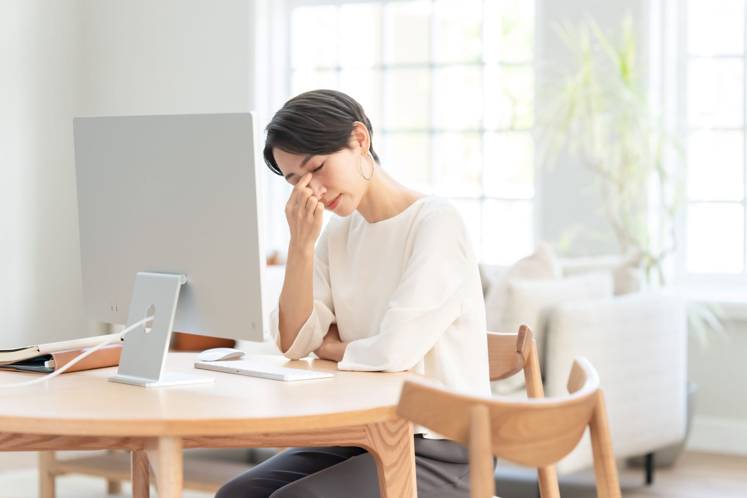 眼精疲労とは、休んでも目の疲れが十分に回復せず、頭痛や肩こり、イライラなどの全身症状が現れる状態のことです。