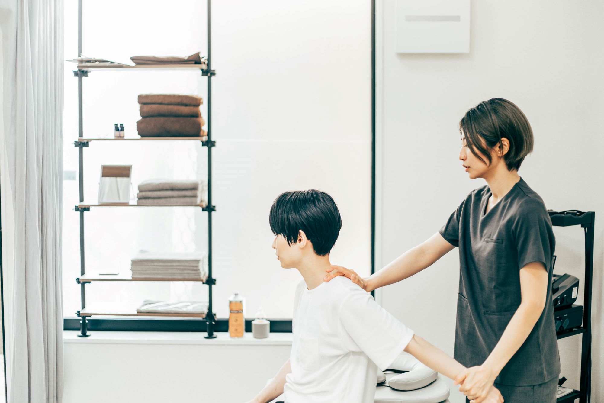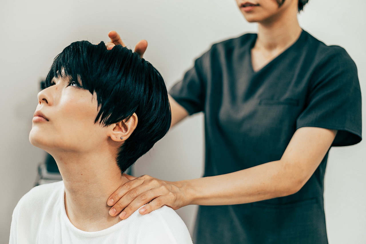また、頭や首、肩などの筋肉が硬くなっている場合は、集中的に手技で対応します。